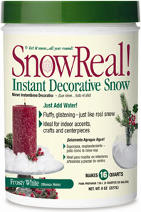 There’s something about snow that makes the holidays feel magical, but you don’t need the real deal to infuse a sense of spirit into interior arrangements, store displays, and centerpieces. Whip up your own snow flurries withSnow Real instant decorative snow. Add one ounce of the mixture with two quarts of water and see how it transforms into fluffy, shimmering snow that brightens displays without melting, dripping, or making a mess.